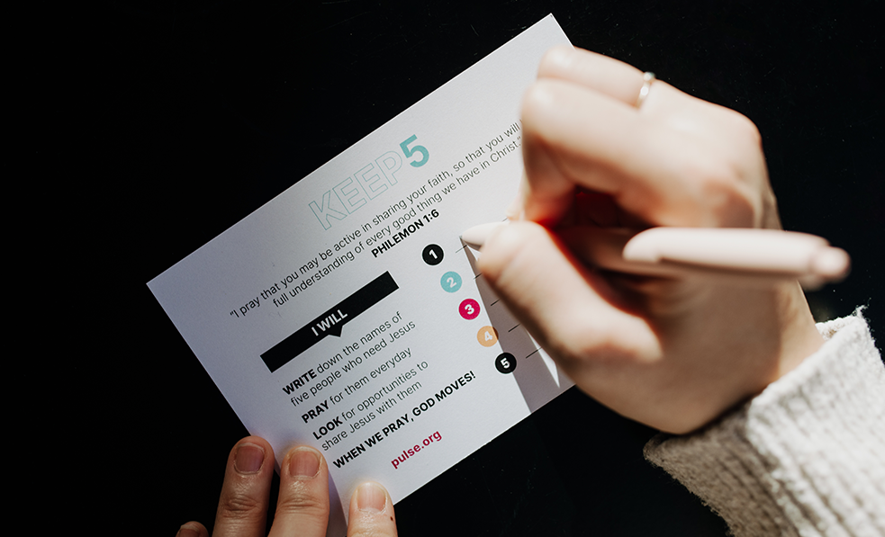 Keep5 is our challenge for you to commit to pray for 5 people in your life that need Jesus. When we pray, God moves.